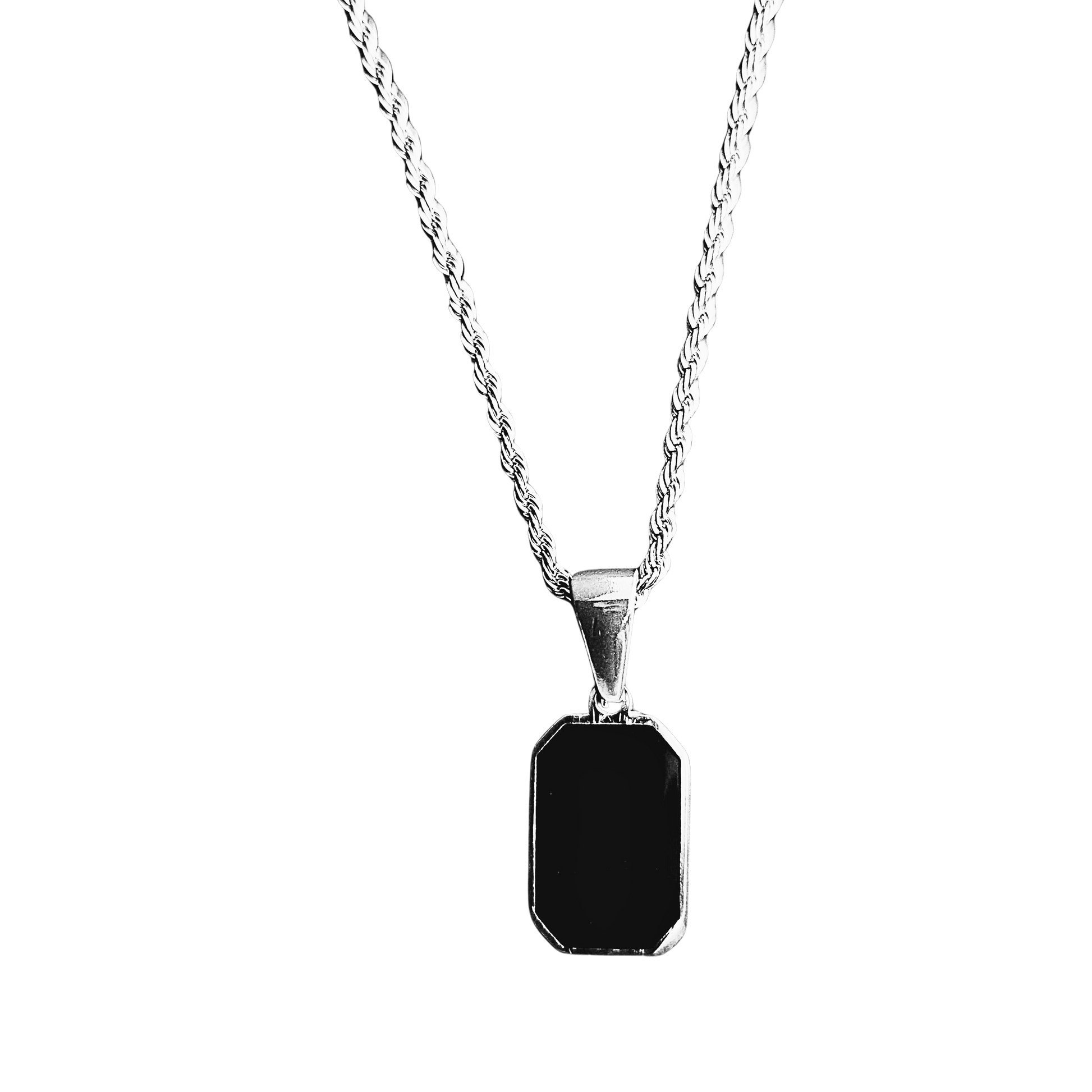 Este collar de hombre presenta un dije rectangular de ónix negro con ocho puntas, un diseño geométrico que potencia la energía protectora y fortalecedora de esta piedra ancestral. El ónix negro es reconocido por su capacidad para absorber energías negativas, aportar firmeza en tiempos de incertidumbre y ayudar a mantener los pies bien anclados a la tierra.